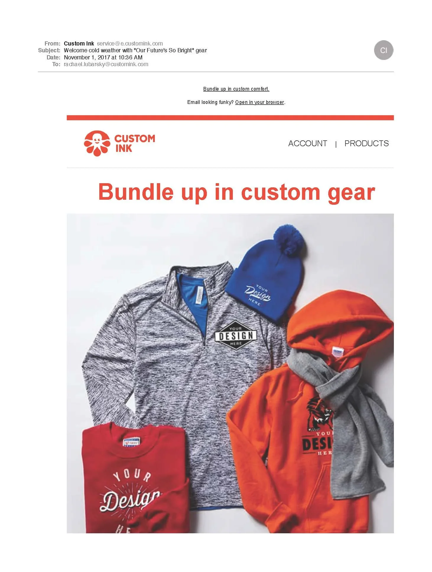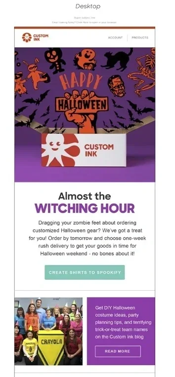 From holiday shopping reminders to new product launches to promotional news, emails inundate everyone’s inboxes. These Custom Ink marketing emails stood out with clever copy, bright visuals, and valuable info.