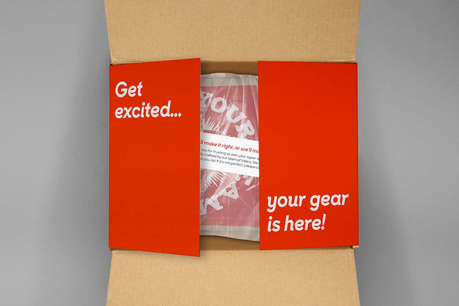 Let’s create some excitement around that final step in the customer journey. From the bright, simple design and messaging on the outside to the anticipation-building inner flaps, this box just begs to be ripped into.